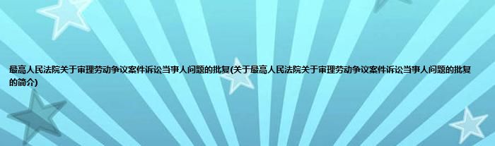 大家好,最高人民法院关于审理劳动争议案件诉讼当事人问题的批复,关于最高人民法院关于审理劳动争议案件诉讼当事人问题的批复的简介很多人还不知道,现在让我们一起来看看吧!
