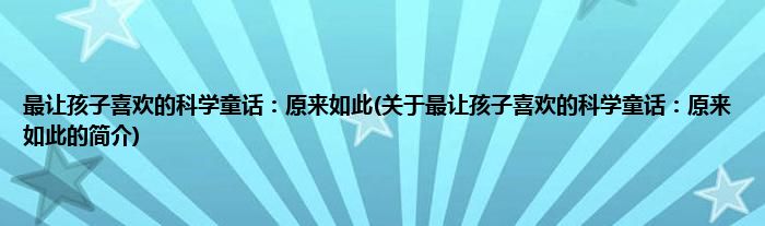 本文关于最让孩子喜欢的科学童话:原来如此的简介就讲解完毕,希望对大家有所帮助。