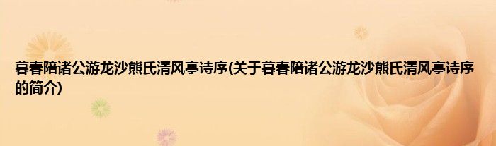 本文关于暮春陪诸公游龙沙熊氏清风亭诗序的简介就讲解完毕,希望对大家有所帮助。