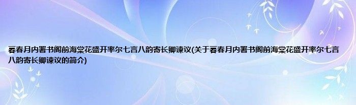 1、 《暮春月内署书阁前海棠花盛开率尔七言八韵寄长卿谏议》是唐末宋初诗人张洎创作的一首七言排律。