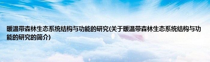 大家好,暖温带森林生态系统结构与功能的研究,关于暖温带森林生态系统结构与功能的研究的简介很多人还不知道,现在让我们一起来看看吧!