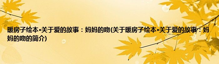 本文关于暖房子绘本·关于爱的故事:妈妈的吻的简介就讲解完毕,希望对大家有所帮助。