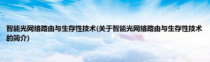 智能光网络路由与生存性技术(关于智能光网络路由与生存性技术的简介)
