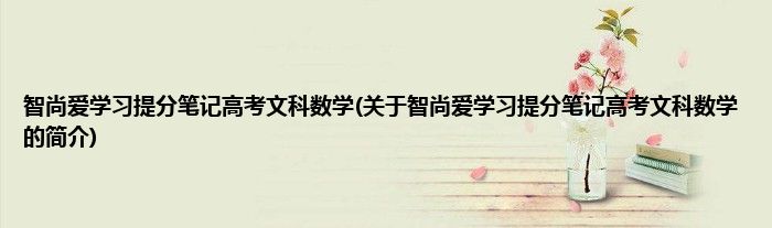 本文关于智尚爱学习提分笔记高考文科数学的简介就讲解完毕,希望对大家有所帮助。