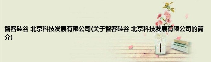 本文关于智客硅谷 北京科技发展有限公司的简介就讲解完毕,希望对大家有所帮助。