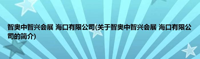 本文关于智奥中智兴会展 海口有限公司的简介就讲解完毕,希望对大家有所帮助。