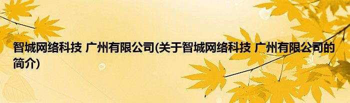 智城网络科技广州有限公司(关于智城网络科技广州有限公司的简介)