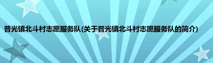 本文关于普光镇北斗村志愿服务队的简介就讲解完毕,希望对大家有所帮助。