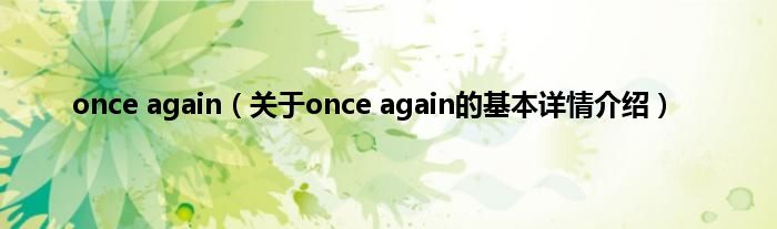 本文关于once again的基本详情介绍就讲解完毕,希望对大家有所帮助。