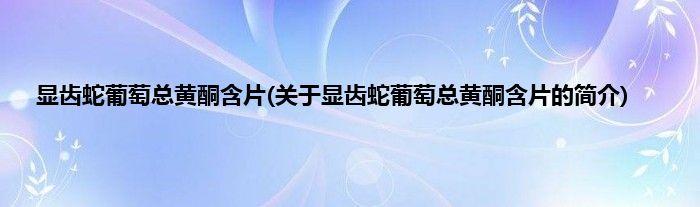 本文关于显齿蛇葡萄总黄酮含片的简介就讲解完毕,希望对大家有所帮助。