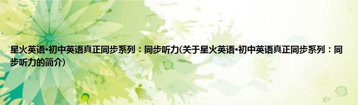 大家好,星火英语·初中英语真正同步系列:同步听力,关于星火英语·初中英语真正同步系列:同步听力的简介很多人还不知道,现在让我们一起来看看吧!