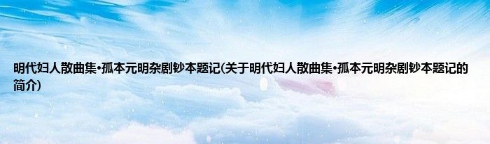 本文关于明代妇人散曲集·孤本元明杂剧钞本题记的简介就讲解完毕,希望对大家有所帮助。