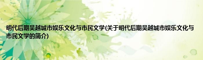 大家好,明代后期吴越城市娱乐文化与市民文学,关于明代后期吴越城市娱乐文化与市民文学的简介很多人还不知道,现在让我们一起来看看吧!