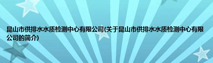 本文关于昆山市供排水水质检测中心有限公司的简介就讲解完毕,希望对大家有所帮助。