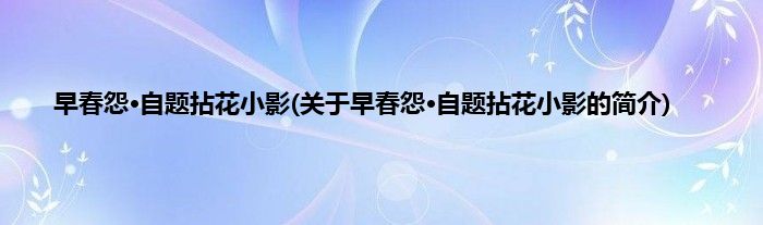 大家好,早春怨·自题拈花小影,关于早春怨·自题拈花小影的简介很多人还不知道,现在让我们一起来看看吧!