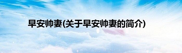 本文关于早安帅妻的简介就讲解完毕,希望对大家有所帮助。