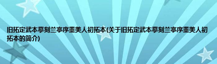 本文关于旧拓定武本摹刻兰亭序董美人初拓本的简介就讲解完毕,希望对大家有所帮助。