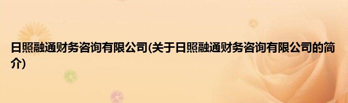 本文关于日照融通财务咨询有限公司的简介就讲解完毕,希望对大家有所帮助。