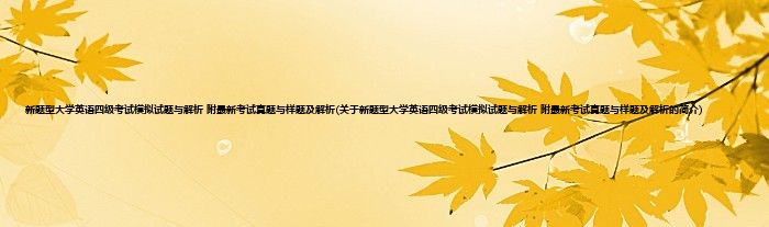 本文关于新题型大学英语四级考试模拟试题与解析 附最新考试真题与样题及解析的简介就讲解完毕,希望对大家有所帮助。