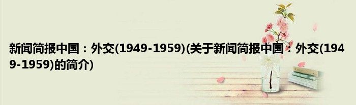 本文关于新闻简报中国:外交(1949-1959)的简介就讲解完毕,希望对大家有所帮助。