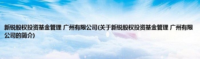 本文关于新锐股权投资基金管理 广州有限公司的简介就讲解完毕,希望对大家有所帮助。