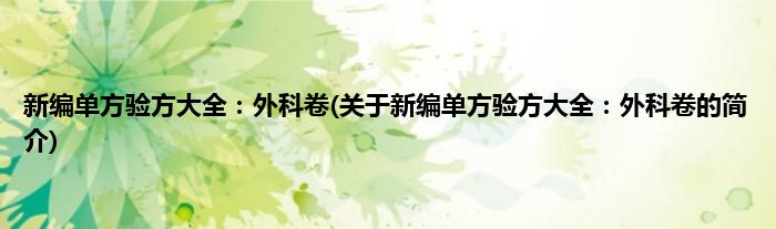 本文关于新编单方验方大全:外科卷的简介就讲解完毕,希望对大家有所帮助。