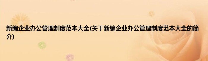 本文关于新编企业办公管理制度范本大全的简介就讲解完毕,希望对大家有所帮助。