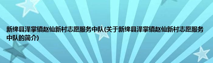1、 新绛县泽掌镇赵仙新村志愿服务中队是由新绛县志愿服务联合会领导下的志愿团体。