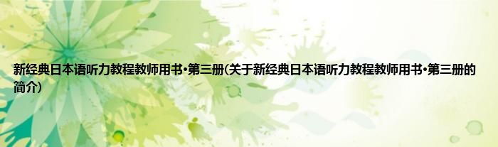 1、 《新经典日本语听力教程教师用书·第三册》是2019年外语教学与研究出版社出版的图书。