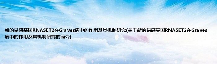 本文关于新的易感基因RNASET2在Graves病中的作用及其机制研究的简介就讲解完毕,希望对大家有所帮助。