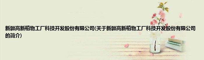 本文关于新疆高新植物工厂科技开发股份有限公司的简介就讲解完毕,希望对大家有所帮助。