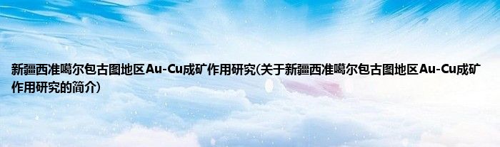 本文关于新疆西准噶尔包古图地区Au-Cu成矿作用研究的简介就讲解完毕,希望对大家有所帮助。