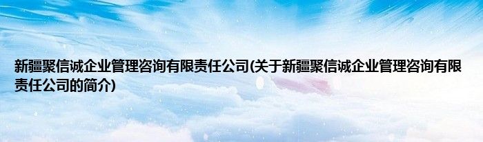 大家好,新疆聚信诚企业管理咨询有限责任公司,关于新疆聚信诚企业管理咨询有限责任公司的简介很多人还不知道,现在让我们一起来看看吧!