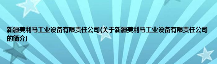 本文关于新疆美利马工业设备有限责任公司的简介就讲解完毕,希望对大家有所帮助。