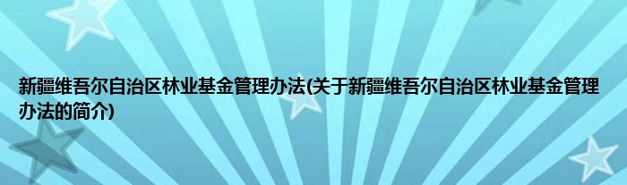 新疆维吾尔自治区林业基金管理办法(关于新疆维吾尔自治区林业基金管理办法的简介)