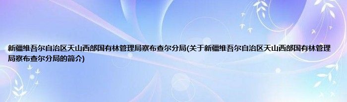 大家好,新疆维吾尔自治区天山西部国有林管理局察布查尔分局,关于新疆维吾尔自治区天山西部国有林管理局察布查尔分局的简介很多人还不知道,现在让我们一起来看看吧!