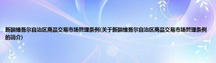 新疆维吾尔自治区商品交易市场管理条例(关于新疆维吾尔自治区商品交易市场管理条例的简介)