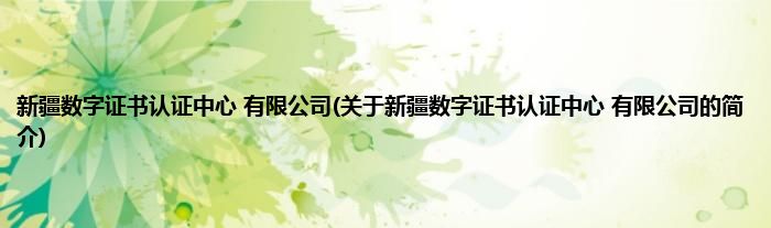 本文关于新疆数字证书认证中心 有限公司的简介就讲解完毕,希望对大家有所帮助。