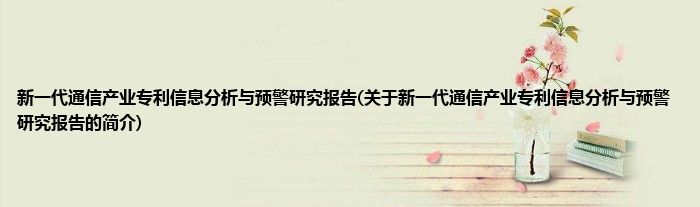 本文关于新一代通信产业专利信息分析与预警研究报告的简介就讲解完毕,希望对大家有所帮助。