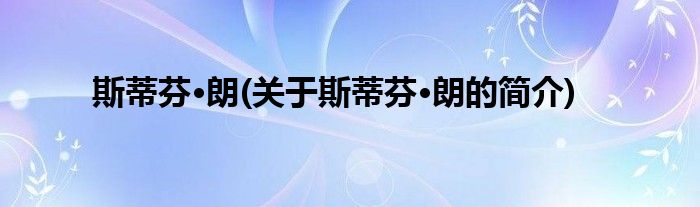 大家好,斯蒂芬·朗,关于斯蒂芬·朗的简介很多人还不知道,现在让我们一起来看看吧!