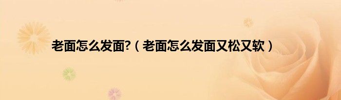大家好,小科来为大家解答以上问题。老面怎么发面?,老面怎么发面又松又软很多人还不知道,现在让我们一起来看看吧!