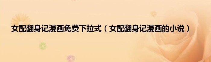 大家好,小常来为大家解答以上问题。女配翻身记漫画免费下拉式,女配翻身记漫画的小说很多人还不知道,现在让我们一起来看看吧!