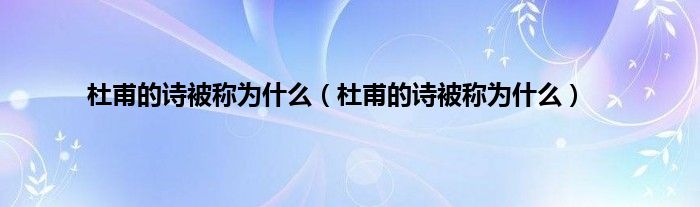 大家好,小科来为大家解答以上问题。杜甫的诗被称为什么,杜甫的诗被称为什么很多人还不知道,现在让我们一起来看看吧!
