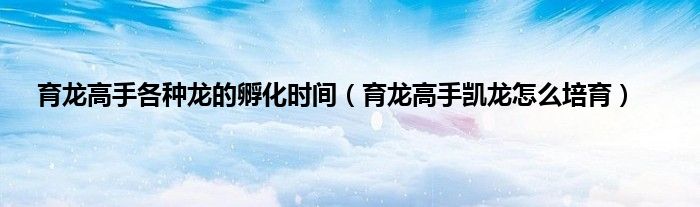 大家好,小常来为大家解答以上问题。育龙高手各种龙的孵化时间,育龙高手凯龙怎么培育很多人还不知道,现在让我们一起来看看吧!
