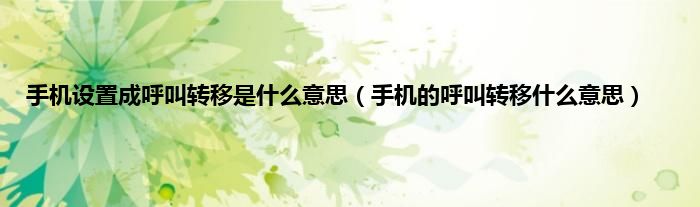 大家好,小常来为大家解答以上问题。手机设置成呼叫转移是什么意思,手机的呼叫转移什么意思很多人还不知道,现在让我们一起来看看吧!