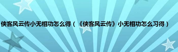 大家好,小常来为大家解答以上问题。侠客风云传小无相功怎么得,《侠客风云传》小无相功怎么习得很多人还不知道,现在让我们一起来看看吧!