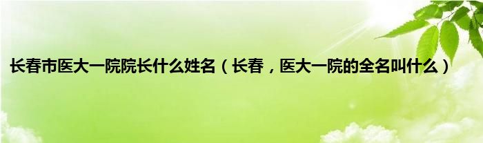 大家好,小常来为大家解答以上问题。长春市医大一院院长什么姓名,长春,医大一院的全名叫什么很多人还不知道,现在让我们一起来看看吧!