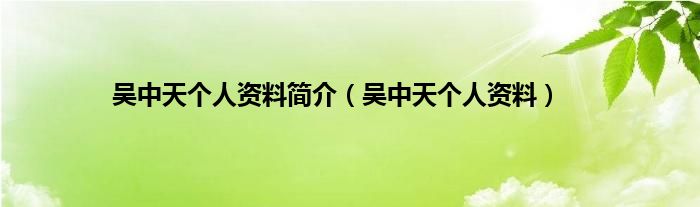 大家好,小常来为大家解答以上问题。吴中天个人资料简介,吴中天个人资料很多人还不知道,现在让我们一起来看看吧!