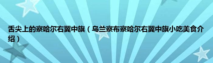 大家好,小常来为大家解答以上问题。舌尖上的察哈尔右翼中旗,乌兰察布察哈尔右翼中旗小吃美食介绍很多人还不知道,现在让我们一起来看看吧!