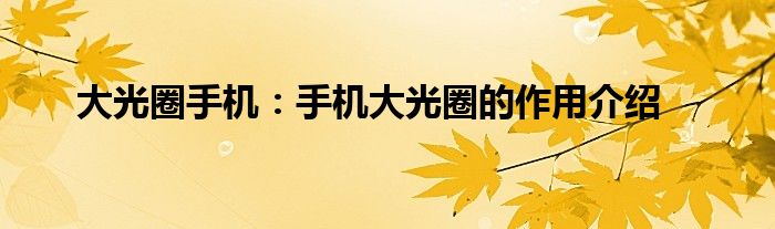 现在大家使用手机的频率越来越频繁,手机也为我们提供了许多的便利,今天小编也来说一下这个大光圈手机:手机大光圈的作用介绍相关的文章,这个操作其实不复杂,接下来就给大家介绍一下大光圈手机:手机大光圈的作用介绍,一起来看看吧: